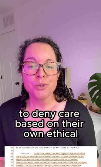 The New Florida Protections of Medical Conscience Law will take effect July 1st, and will allow providers to deny care to patients based on their own moral, religious, and ethical beliefs. This has far reaching effects, and people claiming conscience exemptions are largely protected from retaliation from their employers and organizations they are involved in. A nurse doesn’t like the med they’re giving? They don’t have to. Pharmacist doesn’t believe in a treatment? They don’t have to dispense it. Your primary care provider doesn’t think mental health conditions are real? No referral to psych for you. The implications of this are far reaching and promote a healthcare system that is based on feelings versus science.
