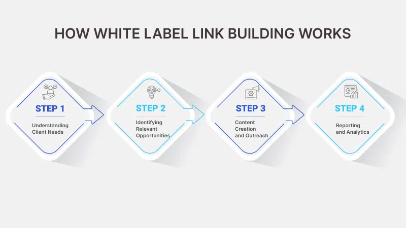 White-label link building services involve a specialized agency creating backlinks on behalf of another agency. The primary agency then presents these links to their clients as their own work.