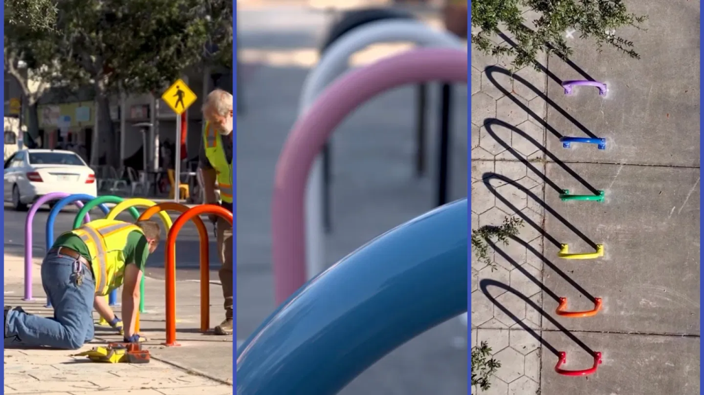 “Pride on the streets!” declared a social media post from the city and its mayor, Ken Welch (D), who called the bike racks “a vibrant way to honor the Pride street murals that were removed earlier this year due to state requirements.”