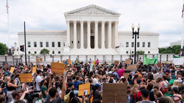 Protesters gather outside the Supreme Court in Washington, Friday, June 24, 2022, following the Supreme Court’s decision to overturn Roe v. Wade.