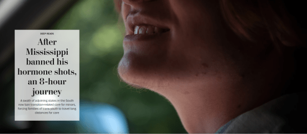 She knew that Mississippi’s law contained a rare aid-and-abet clause that prohibited adults from helping a minor transition. She didn’t understand the particulars, and she didn’t know what would happen to her if she broke it, but she cared less about penalties than she did about Ray, and so, the day the ban passed, she decided she’d do anything to keep her son well. (Katie and her family spoke to The Washington Post on the condition that they be identified by only their first names out of concern they could face legal consequences.)
