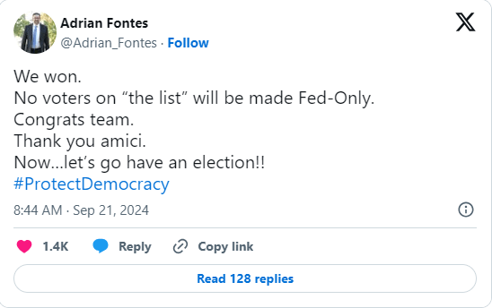 Maricopa County Elections Director Adrian Fontes celebrated the ruling, calling it “a significant victory for those whose fundamental right to vote was under scrutiny.” He continued, “The court faced a stark choice: to allow voters to participate in just a few federal races on a limited ballot, or to make their voices heard across hundreds of decisions on a full ballot that includes a variety of local and state offices. We deeply appreciate the Arizona Supreme Court for their prompt and just resolution.”
