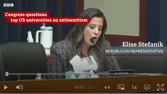 They were asked by Republican New York Congresswoman Elise Stefanik: “Does calling for the genocide of Jews violate [your university’s] code of conduct or rules regarding bullying and harassment? Yes or no?”