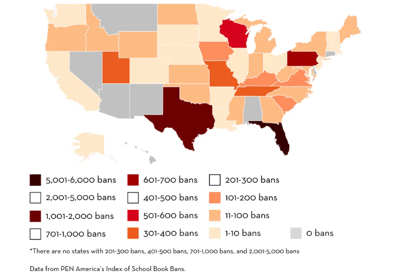 A recent report from PEN America claims that there was a “unprecedented” spike in book bans in the second half of 2023.