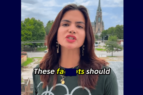 Gomez has a long history of using anti-gay slurs, including during her failed campaign for Missouri Secretary of State, where she recently referred to anyone who didn’t vote for her as a “faot.” One of her main campaign slogans was “Don’t be weak and gay,” and she gained attention earlier this year when a video of her running in a Kevlar vest went viral. In the video, she said, “In America, you can be anything you want. So don’t be weak and gay. Stay fking hard.”
