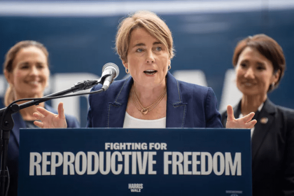 “Rates of suicide are up,” Healey said. “And since Trump overturned Roe—let’s be clear, he did overturn Roe… he followed through on that—now one in three women in America lives in a state with an abortion ban. These are very real threats we face.”