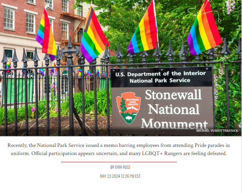 The decision sparked immediate concern among National Park Service employees and LGBTQ+ advocates. Many pointed out that the NPS has a long history of participating in Pride parades across the country, even under the Trump administration, which was known for its efforts to restrict LGBTQ+ representation in federal agencies, including at embassies. Employees also highlighted the significant role the NPS plays in managing Stonewall National Monument, a site dedicated to LGBTQ+ history and civil rights. Notably, the founding documents of Stonewall National Monument explicitly state that its purpose is “to preserve and protect Christopher Park and the historic resources associated with it” and “to interpret the Stonewall National Historic Landmark’s resources and values related to the lesbian, gay, bisexual, and transgender civil rights movement.” This has raised questions about how the NPS can reconcile this mission with its new stance on Pride participation.